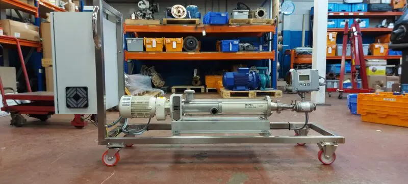 In order to meet and exceed the customers’ requirements, we specified a Seepex Progressive Cavity Pump: a hygienic pump with flow meters and flow controls linked back to a control panel.