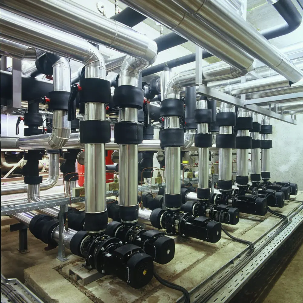 Without pumps circulating the water, the system would not function. It’s also worth noting that pumps use a significant amount of electricity – for example a system with 3no. 18.5kw pumps running 24 hours a day, 365 days a year would use 486,180kw/h of electricity – costing £97,236 at £0.20 per kilowatt hour.